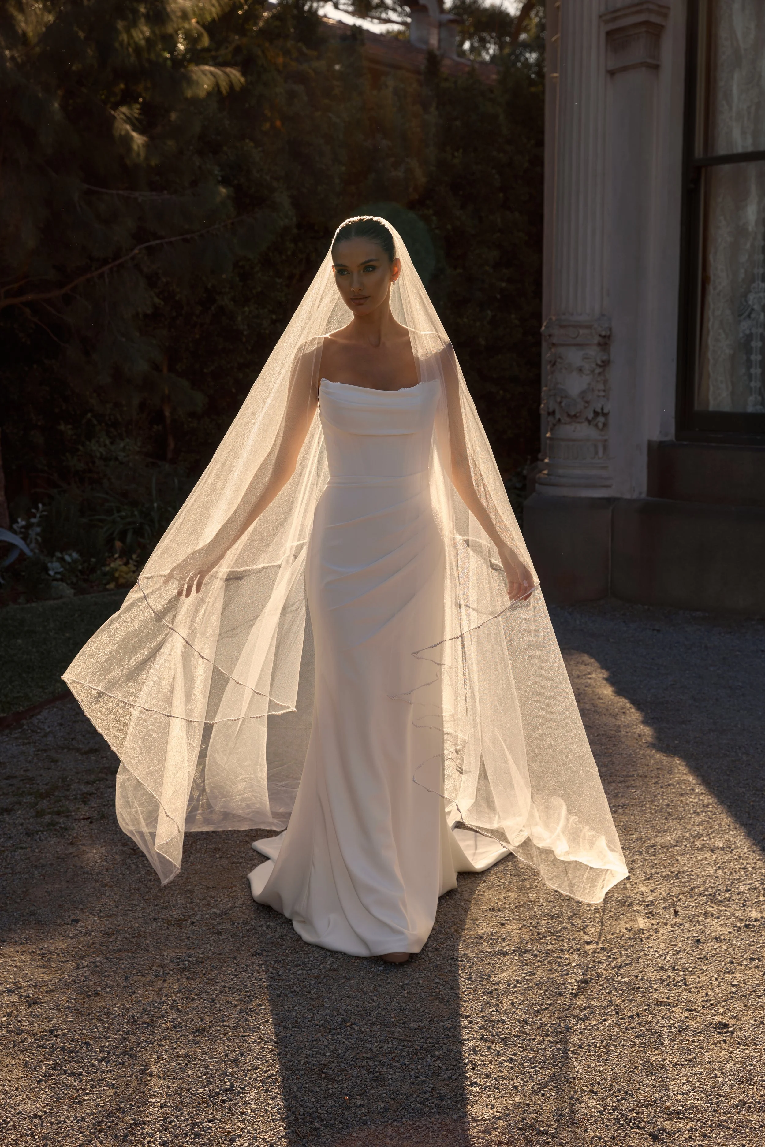 Our studio samples range primarily from sizes 12–14, with select gowns available in sizes 16, 18, and 22. Once you find a gown you love, it is made to order in your closest standard size based on your measurements. This ensures every bride can purchase the gown they love, regardless of sample size availability.